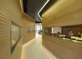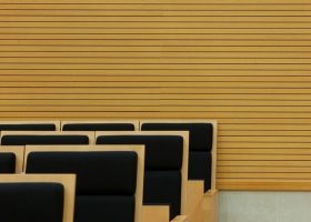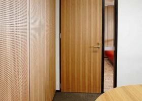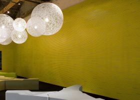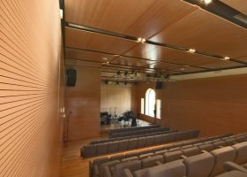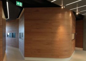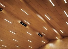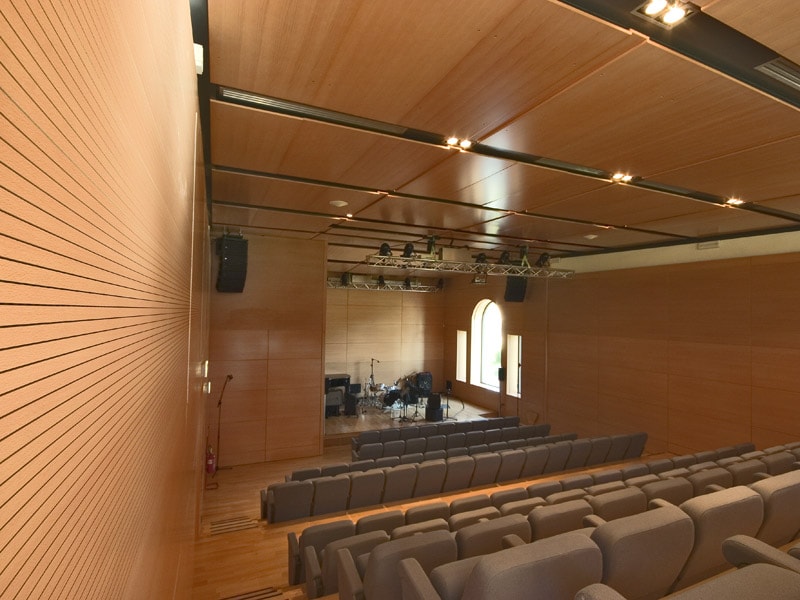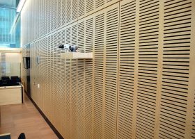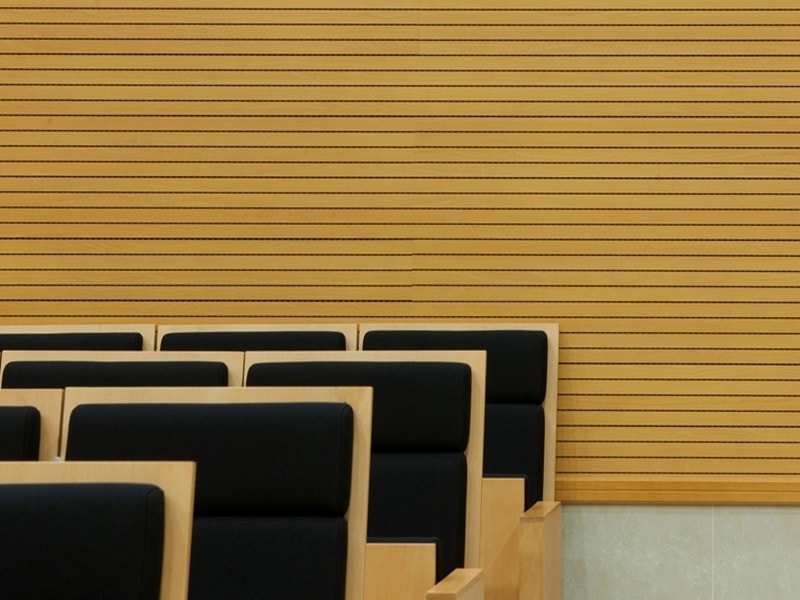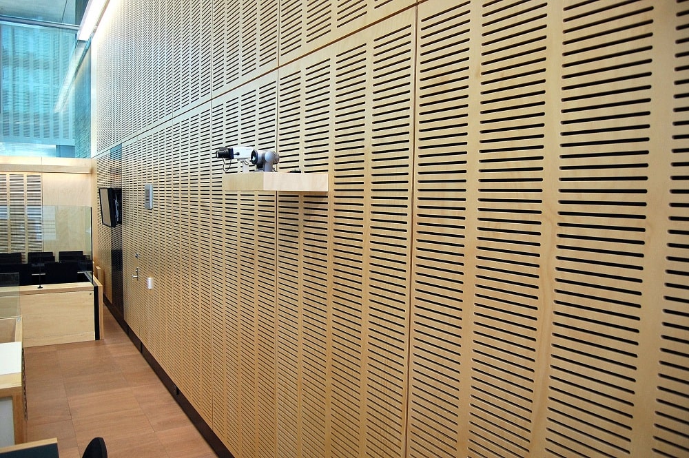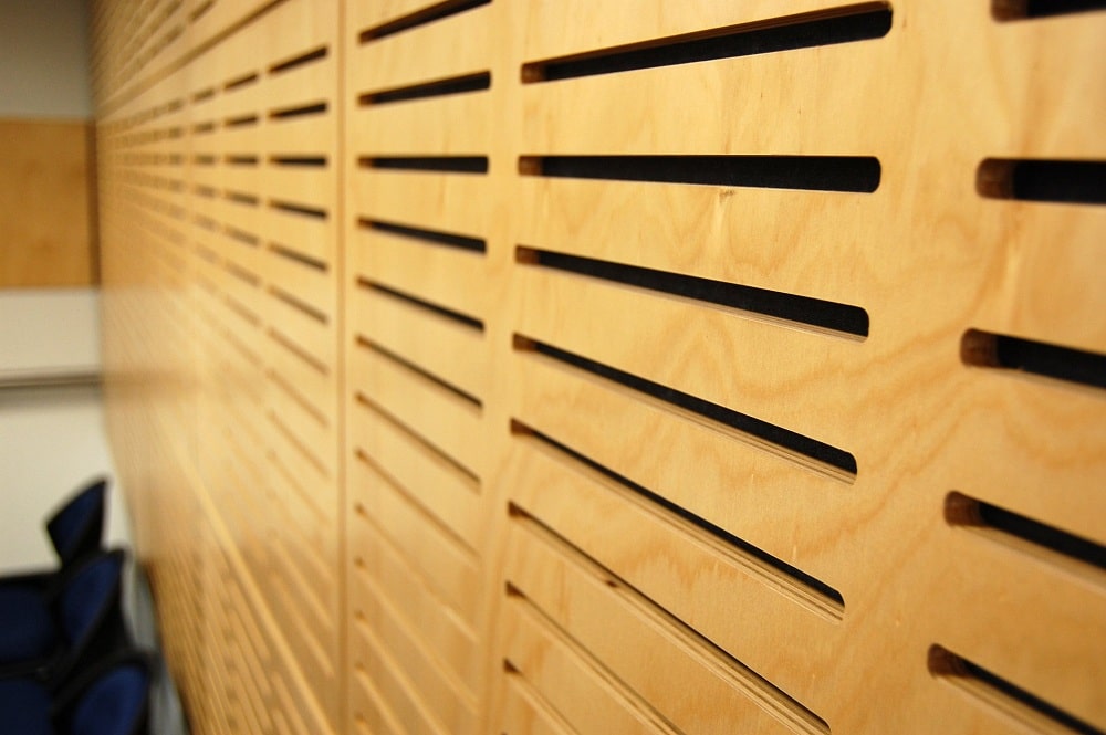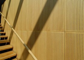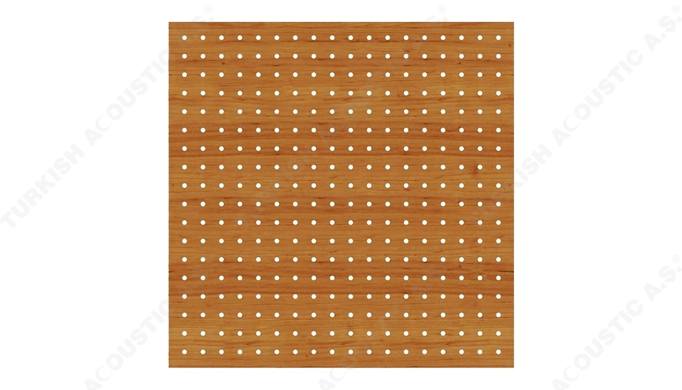 Ahşap Duvar Panelleri : Bu duvar paneller diğer akustik ürünlere göre daha farklı bir görünüme sahiptir. Doğal bir üründür. Delikleri sayesinde sesin parçalanarak arka tarafındaki kumaş çarparak yok etmesini sağlar. Perfore derzli delikli mdf lam melamin bi üründür. Panellerin arkası soundtex kumaşla kaplıdır. Delikli ahşap paneller, farklı perforasyon tipleriyle orta ya da yüksek seviyede ses yutuculuk performansı sağlayan ve akustik projelendirmelerde sık kullanılan dekoratif ürünlerdir. Özellikle alanın tamamının yüksek derecede ses yutucu panellerle kaplanmadığı yerlerde düşük oranda perforasyonlu veya perforasyonsuz (deliksiz) panellerle ses yansıtıcı olarak da işlev görmektedirler.