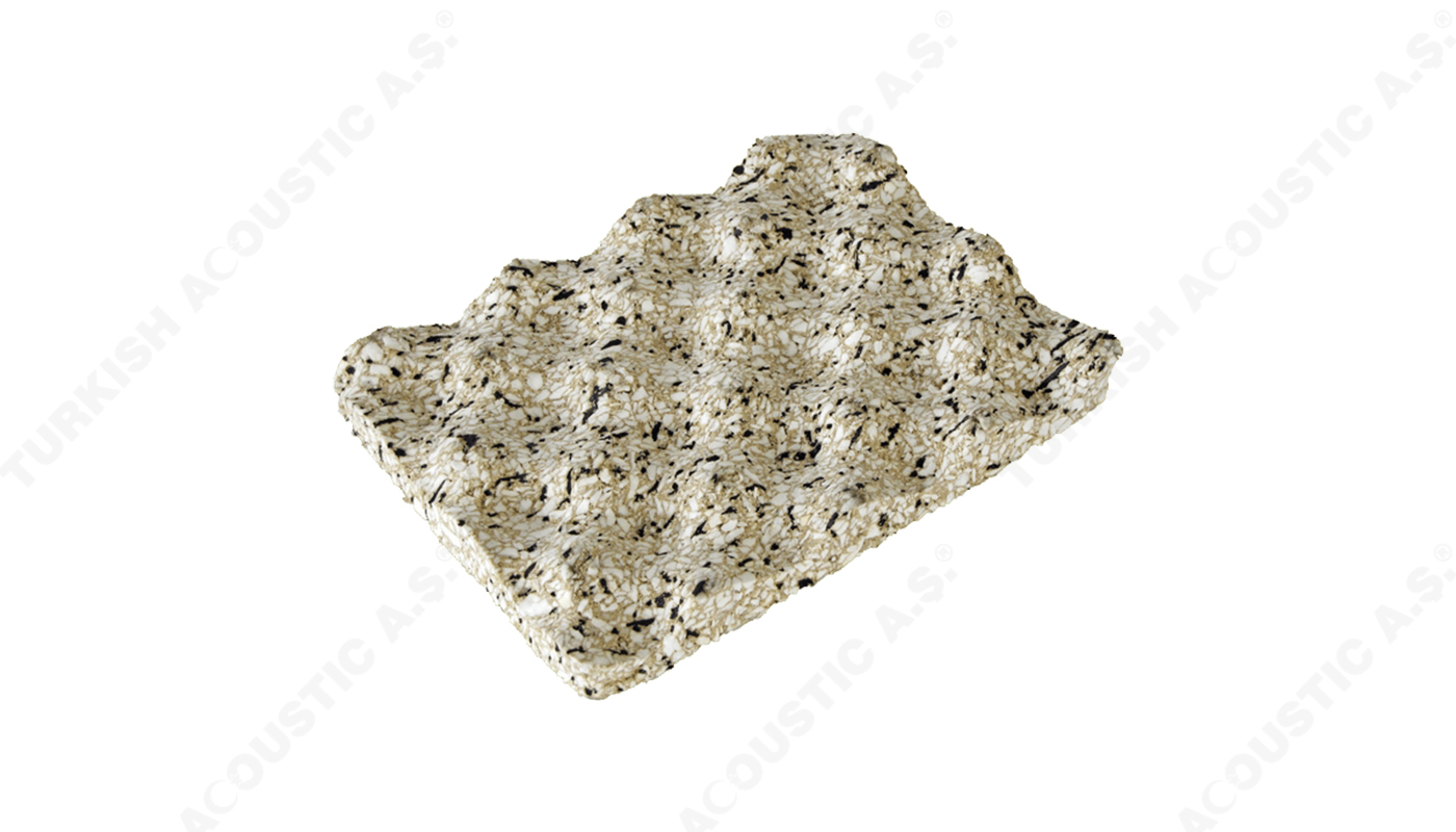 Geniemat : Geniemat akustik ses ürünleri yumurta sünger görünümüne sahip olarakta sizlere temin edilebilmektedir. Kauçuk ve mantar oranı kullanım yerine ve ihtiyaca göre ayarlanabilmektedir. Makine zeminlerinde akustik anti vibrasyon ped olarakta kullanılmaktadır. GenieMat , doğrudan sert yüzey zemin kaplamaları altında ve beton ve ahşap konstrüksiyonda kullanılan, %94 geri dönüştürülmüş kauçuk içeriğinden yapılmış, düz, esnek, azaltılmış bir ses iletim paspasıdır. Çok aileli konutlarda, yüksek artışlarda veya ticari binalarda üstün ses kontrolü gerektiğinde kullanılır ve seramik karo, porselen ve taşı alt tabaka çatlaklarından korur. Kiremit, taş, ahşap ve vinil zemin kaplamaları gibi doğrudan yapıştırılmış zemin kaplamaları için tasarlanmıştır. Tek adımlı yöntem, esnek zemin kaplamaları için üstün ses kontrolü sağlar. Teknik şartnamelere uygundur. Akustiksan olarak her zaman hizmetinizdeyiz. Bizi tercih ediniz.