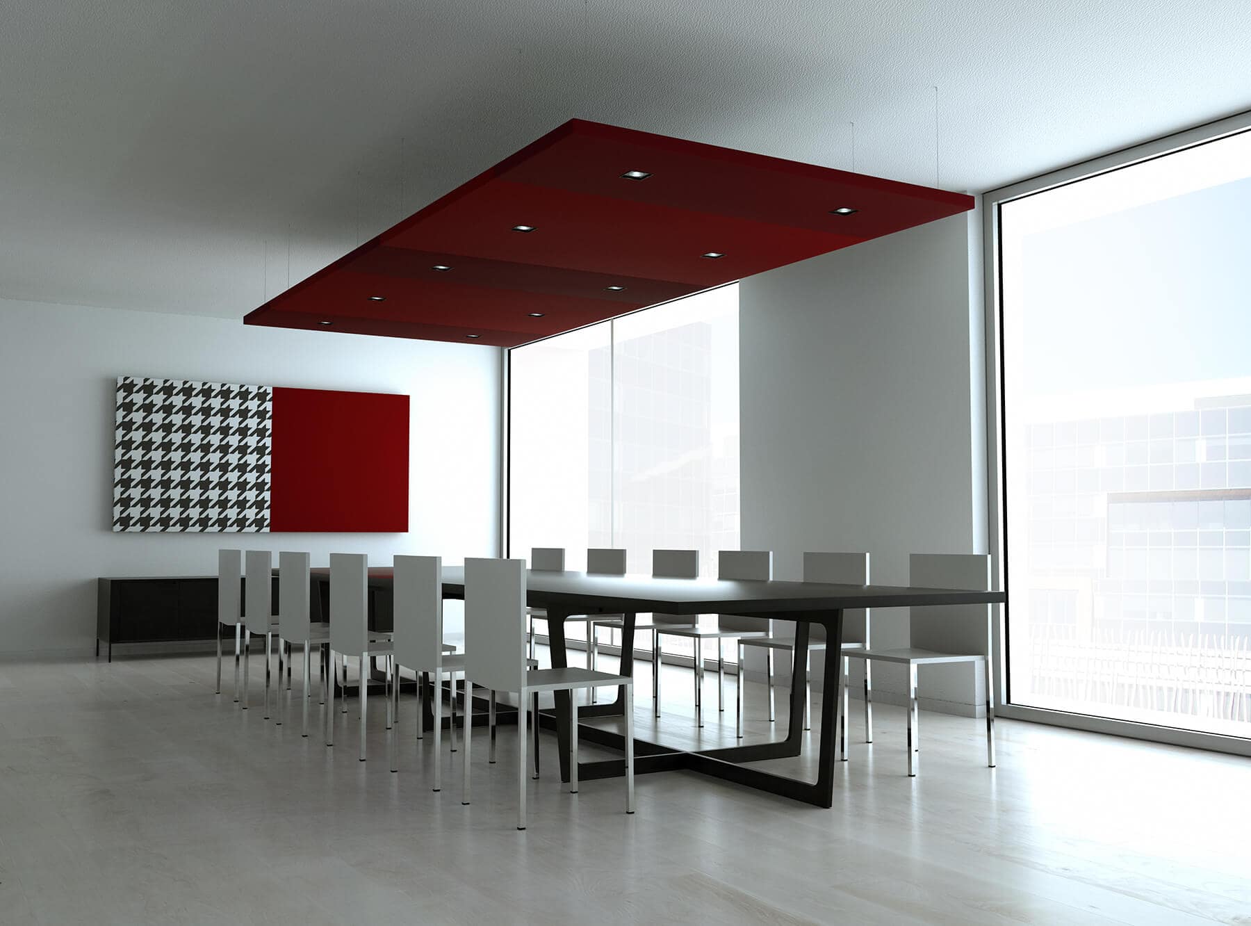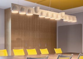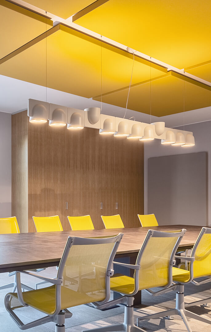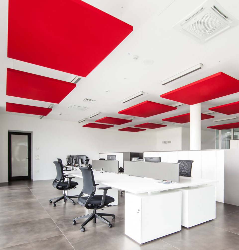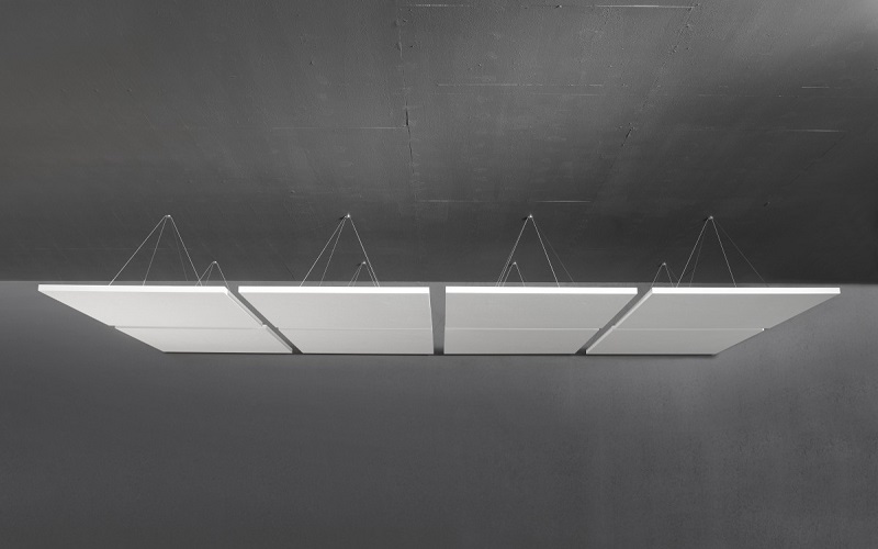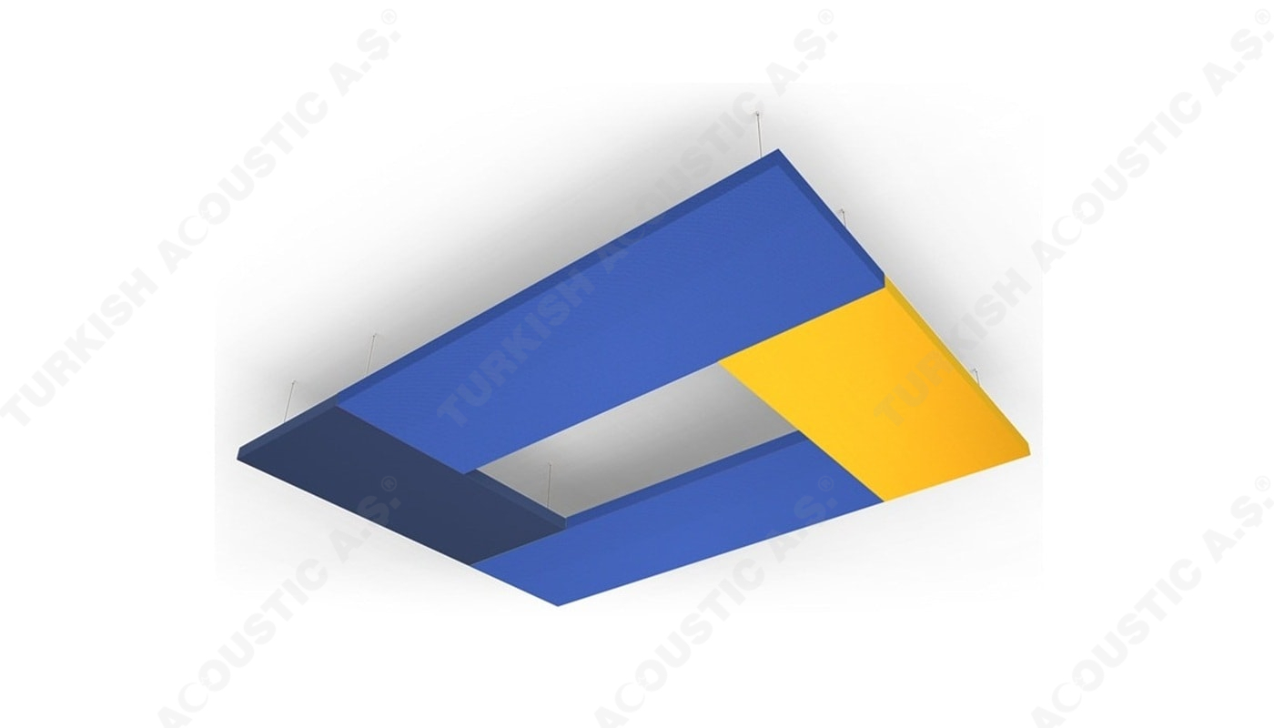 Kanopi Panel Opsiyonlar : Kumaş kaplı akustik paneller farklı geometrik şekillerde ve kalınlıklarda kombine üretilebilmektedir.