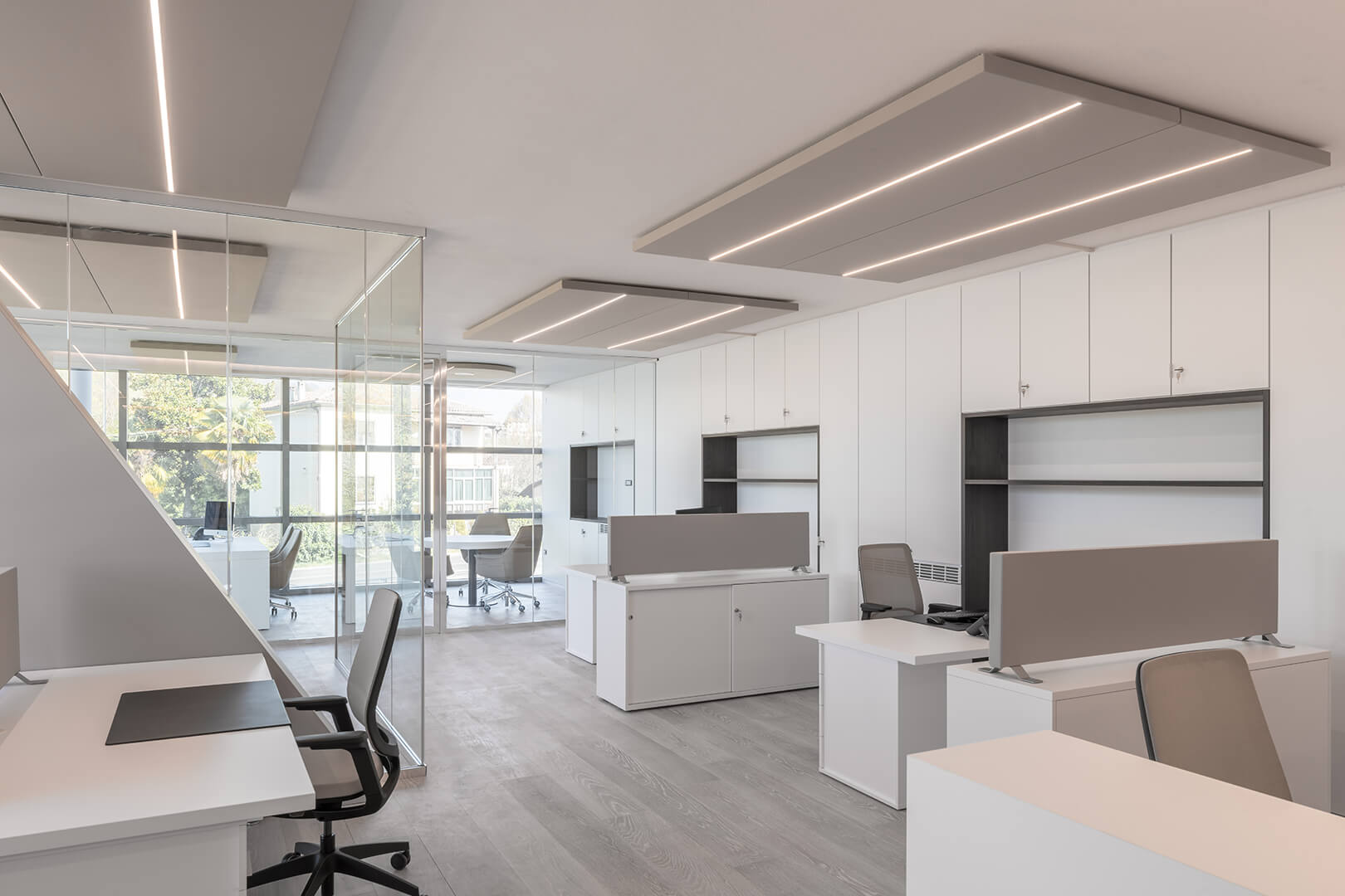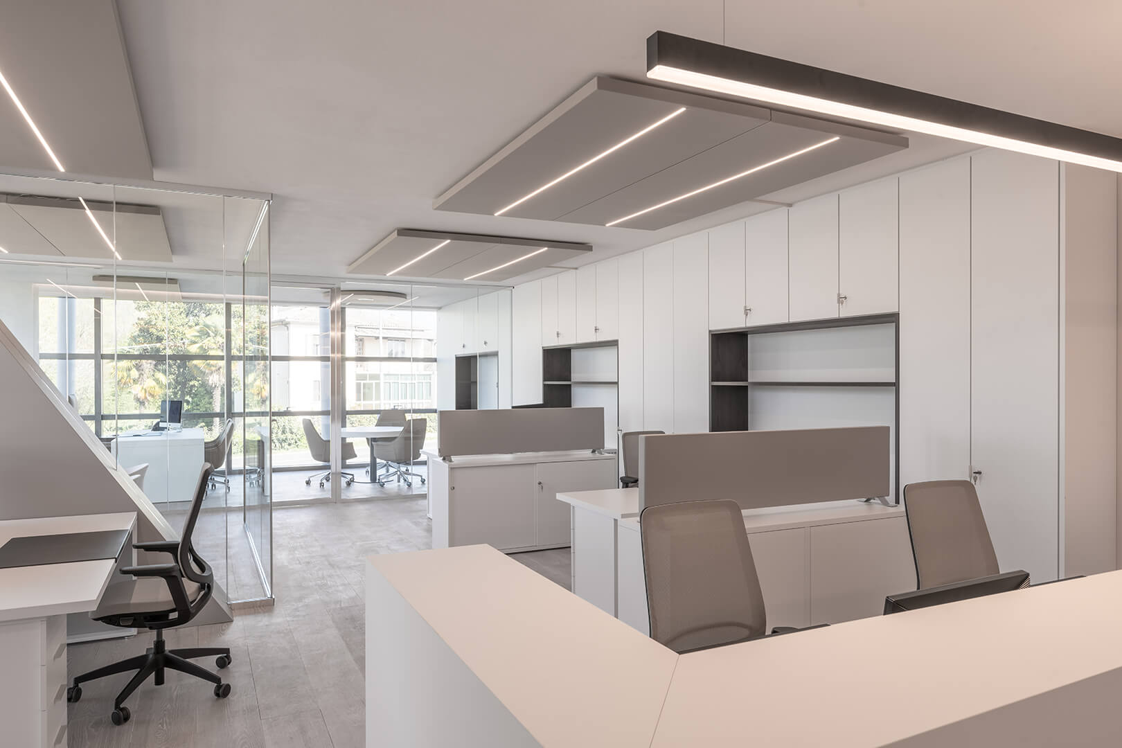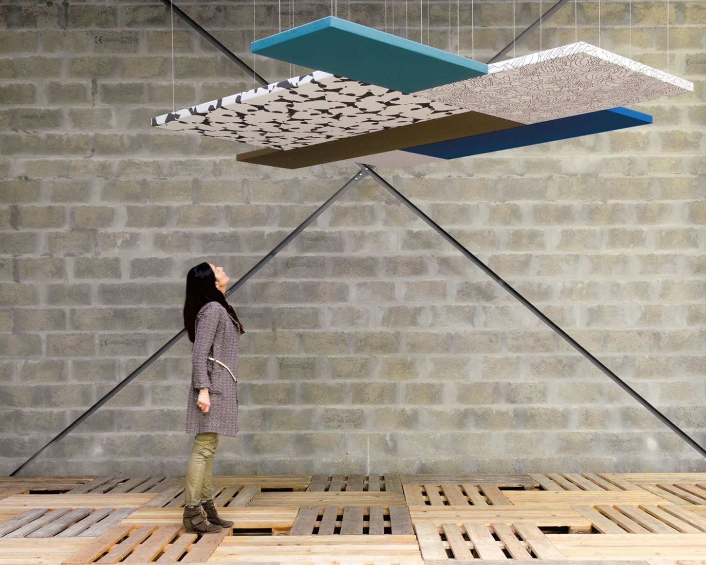 Kanopi Panel Opsiyonlar : Kumaş kaplı akustik paneller farklı geometrik şekillerde ve kalınlıklarda kombine üretilebilmektedir.