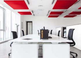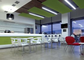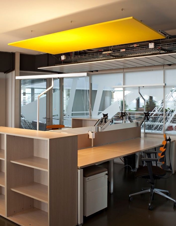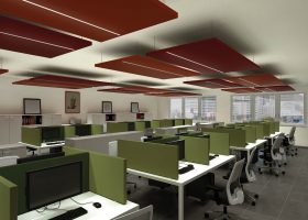 Akustik Kanopi Paneller : Akustik kanopi tavan sistemleri ofis , işyeri alışveriş merkezleri ve spor salonları, toplantı salonları , kütüphaneler, çağrı merkezleri , fabrikalar gibi ses karmaşasının yoğun olduğu mekanlarda parazit sesleri düzenlemek ve gürültüyü kontrol altına almak için kullanılır. Kanopi akustik tavan sistemleri NRC akustik değeri ( ses emilim yutum değeri ) 0.95-1.00 aralığındadır. Baffle akustik kumaş kaplı pano panelleri yangın dayanımı, UNE – EN 13501-1:2007 standardına göre B s2 d0 sınıfıdır. Ürün starndart 30 mm 40 mm ve 50 mm kalınlıkta üretilir. Baffle tavan sistemleri kaplamalı yada düz basotect sünger panelden üretilir. Standart ebad 50 cm x 150 cm gibi diktörtgen şekillerdir. Kanopi akustik paneller, çelik paslanmaz aksesuar olan kablo ve ankaraj malzemeleri ile tavanlara asılarak monte edilir. ( Canopy Acoustic Ceiling ). Akustiksan her zaman hizmetinizdedir.