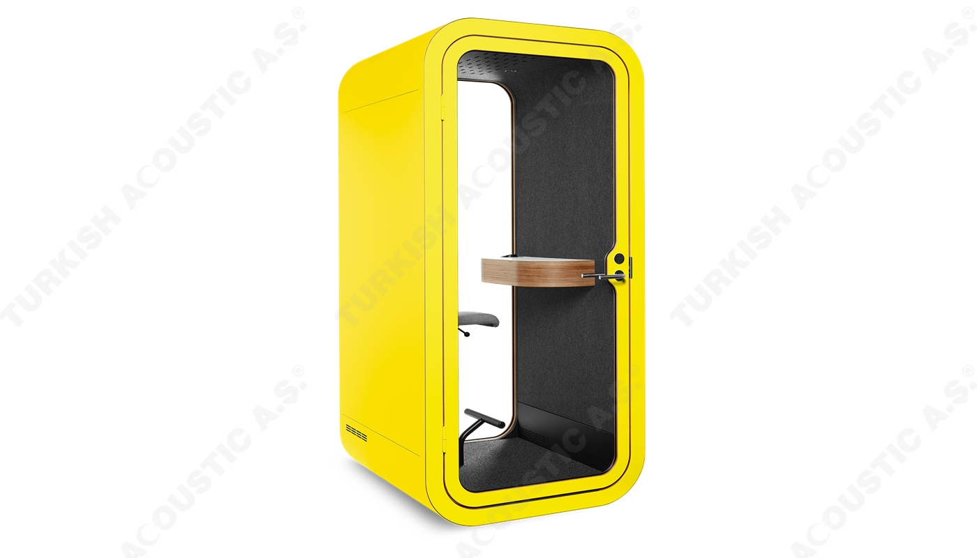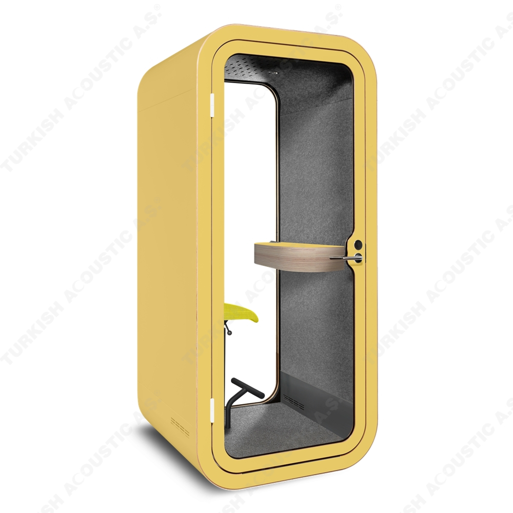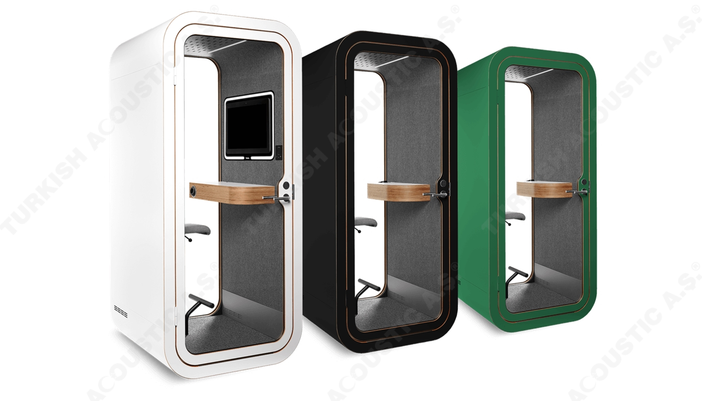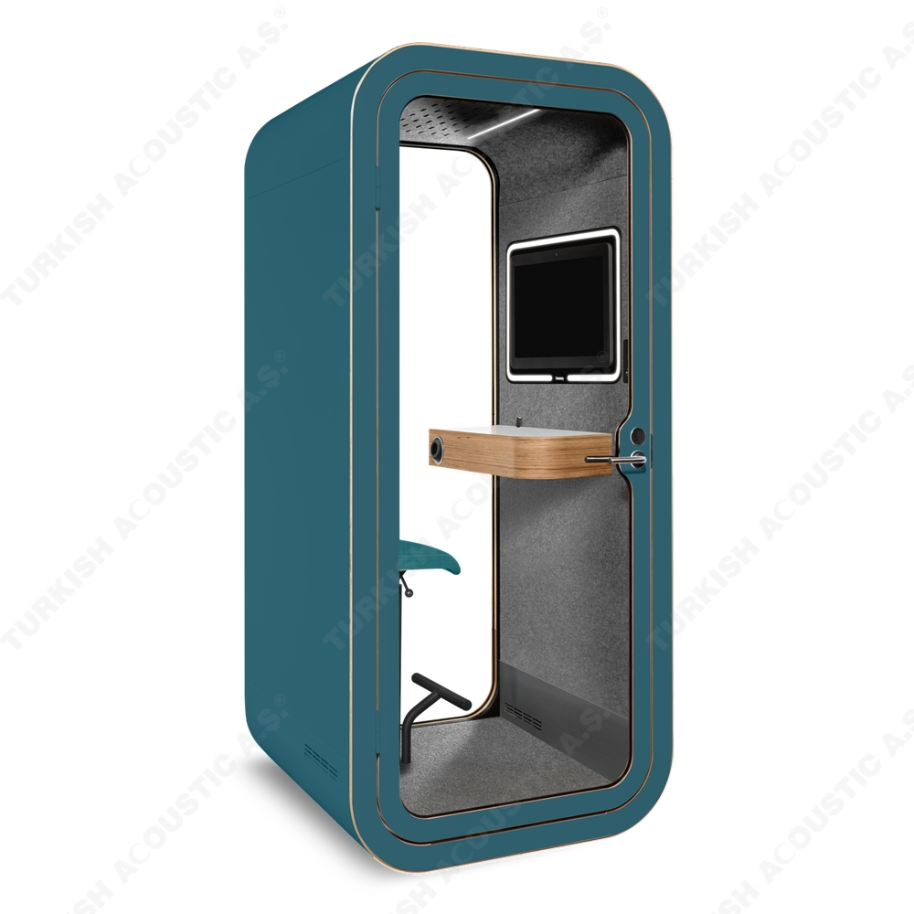 Telefon Konuşma Kabinleri : Ofis akustiğinde yeni bir tarz arayanlar için tasarlanmış, yüksek ses yalıtım kalitesine sahip akustik telefon konuşma kabinleri artık size rahat bir nefes aldıracak. Acoustic office phone booth & pods avrupa normlarında üretimini yaptığımız yerli ve milli imkanlarla ve hammaddesi tamamen Türkiye'ye ait bir ürünümüzdür. Akustik kumaş kaplı paneller ile kaplanan iç mekanı rengarenk zevkinize özel tasarlanmakta olup, şık ve dekoratif tasarımı ile ofislerinizde daha çok sakinliği isteyeceğiniz yenilikçi ürünlerdendir. İçerisinden kullanılan aksesuar ve elektronik aksamlar tamamen size özel üretilmektedir. Teknik şartnamelere uygundur.