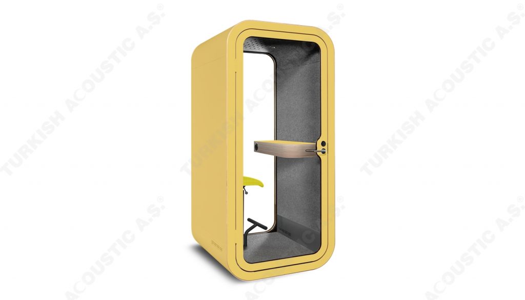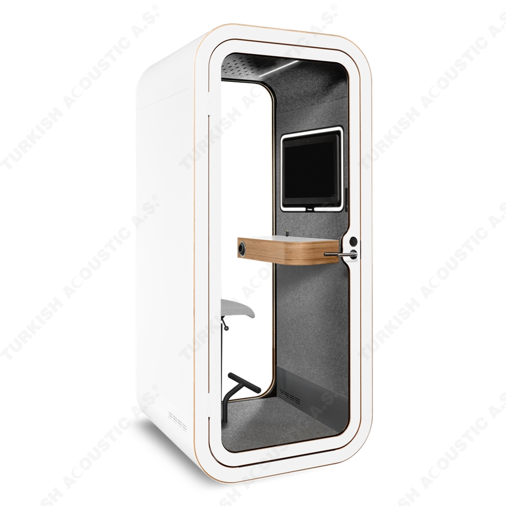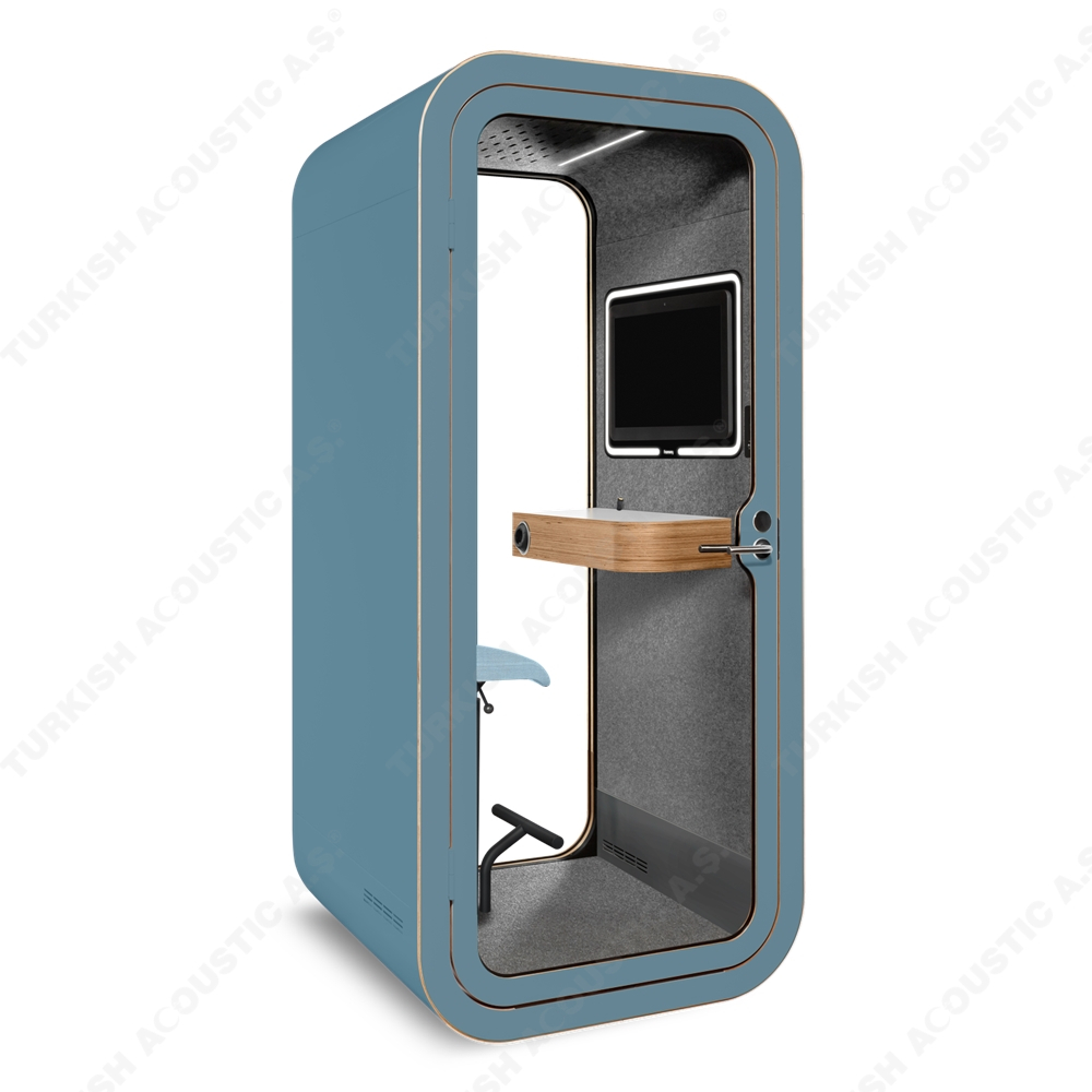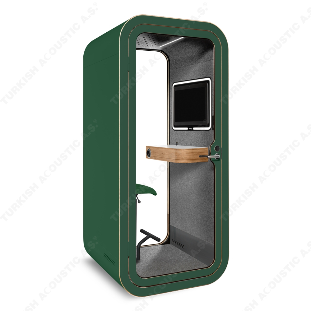 Telefon Konuşma Kabinleri : Ofis akustiğinde yeni bir tarz arayanlar için tasarlanmış, yüksek ses yalıtım kalitesine sahip akustik telefon konuşma kabinleri artık size rahat bir nefes aldıracak. Acoustic office phone booth & pods avrupa normlarında üretimini yaptığımız yerli ve milli imkanlarla ve hammaddesi tamamen Türkiye'ye ait bir ürünümüzdür. Akustik kumaş kaplı paneller ile kaplanan iç mekanı rengarenk zevkinize özel tasarlanmakta olup, şık ve dekoratif tasarımı ile ofislerinizde daha çok sakinliği isteyeceğiniz yenilikçi ürünlerdendir. İçerisinden kullanılan aksesuar ve elektronik aksamlar tamamen size özel üretilmektedir. Teknik şartnamelere uygundur.