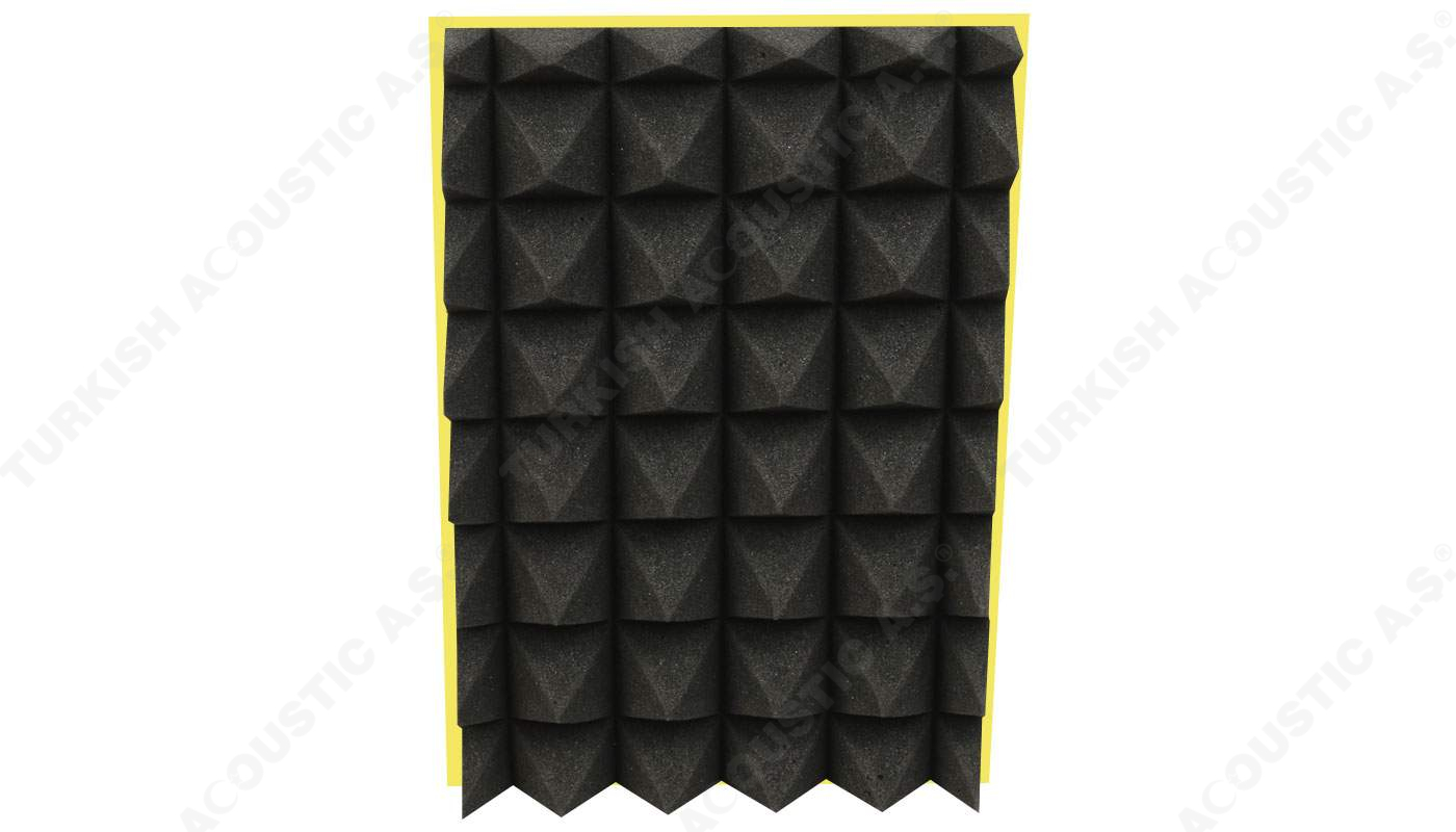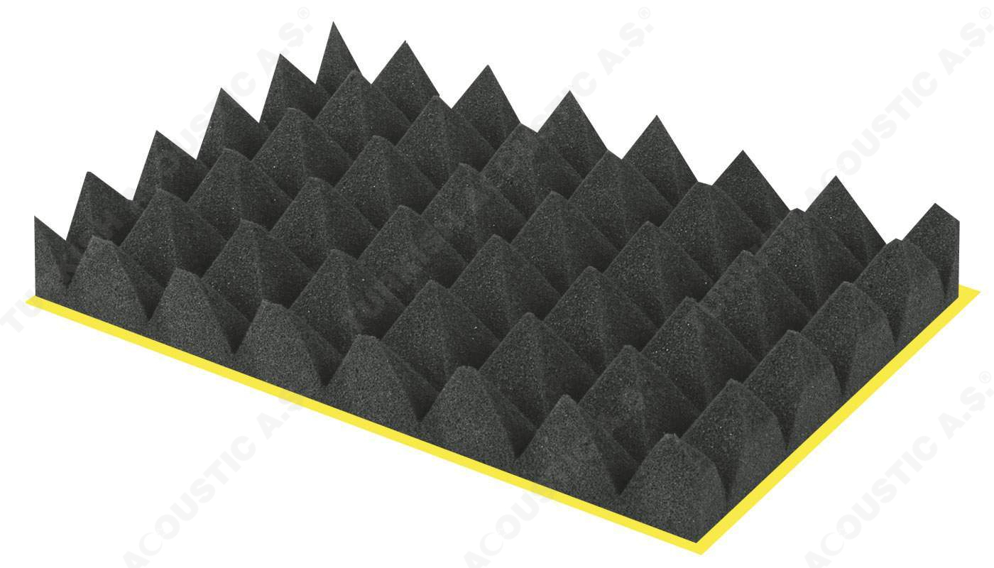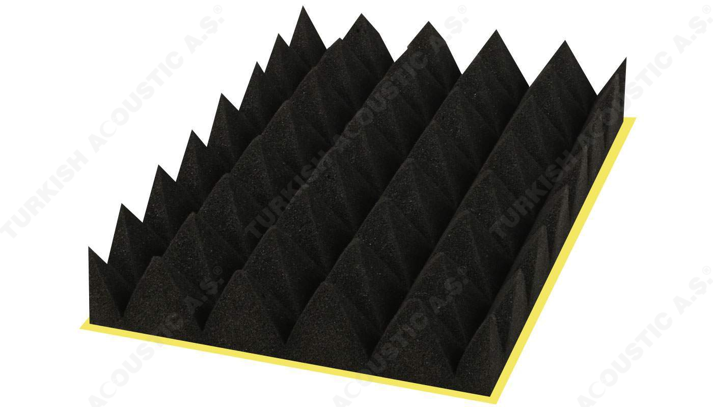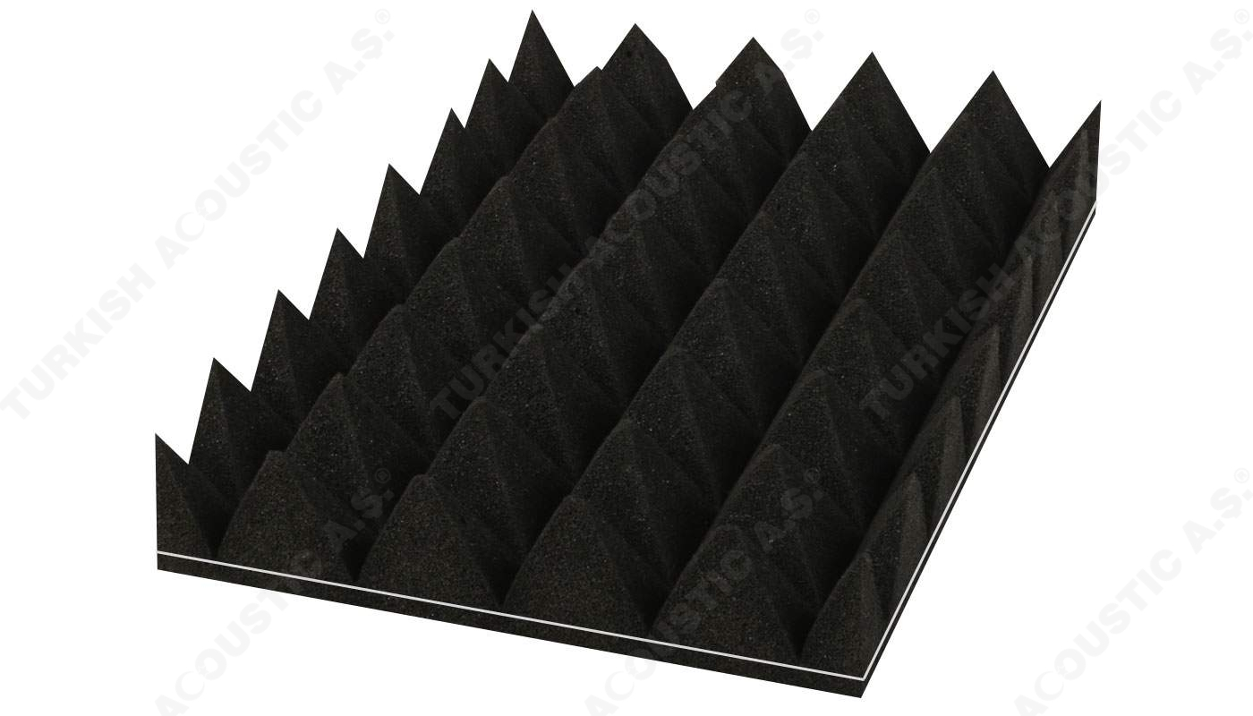 Yanmaz Akustik Piramit Sünger Ölçüleri : 100 cm x 100 cm Plaka ölçülerinde olup, 40 mm ve 50 mm perakende olarak satışa sunulmaktadır.