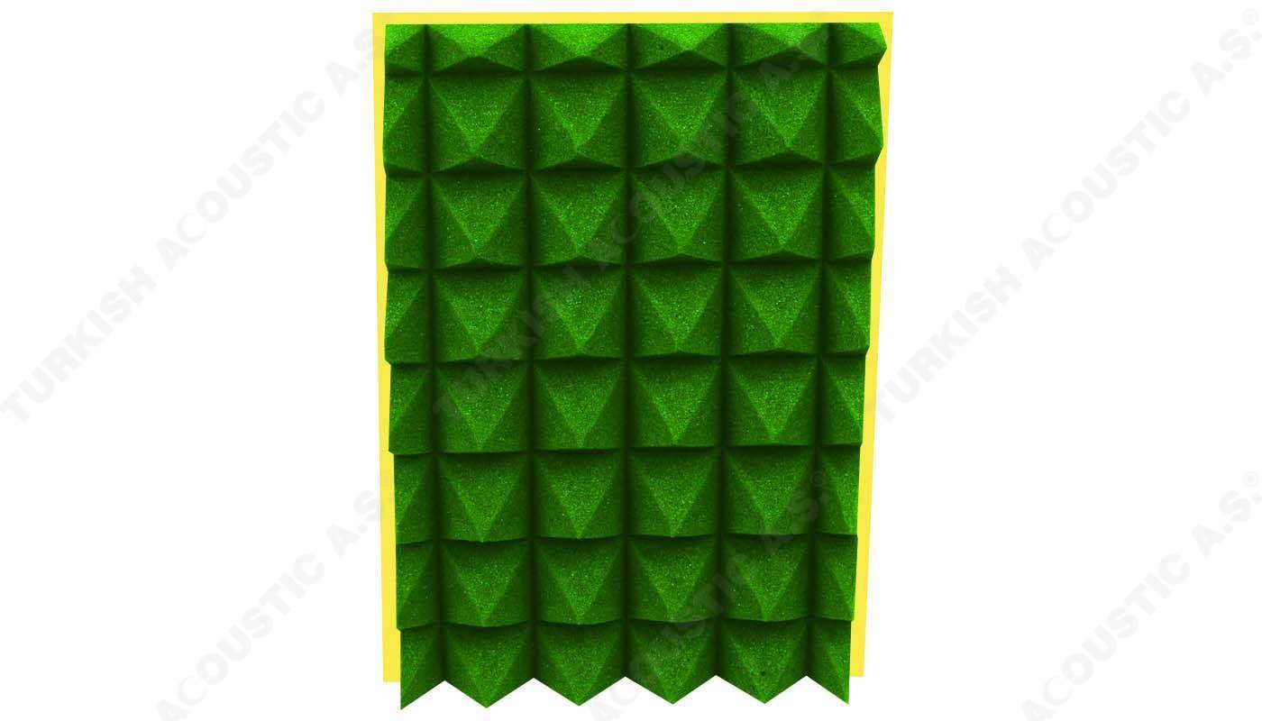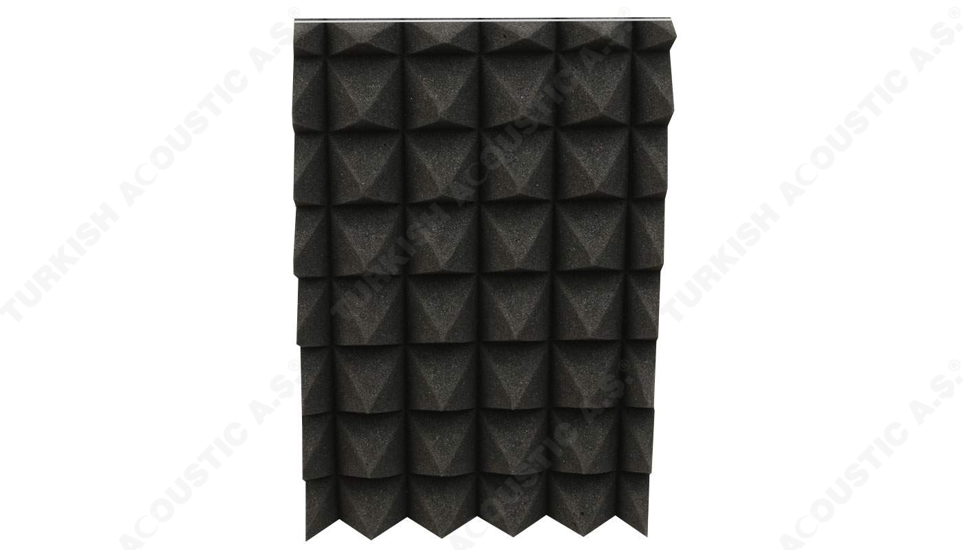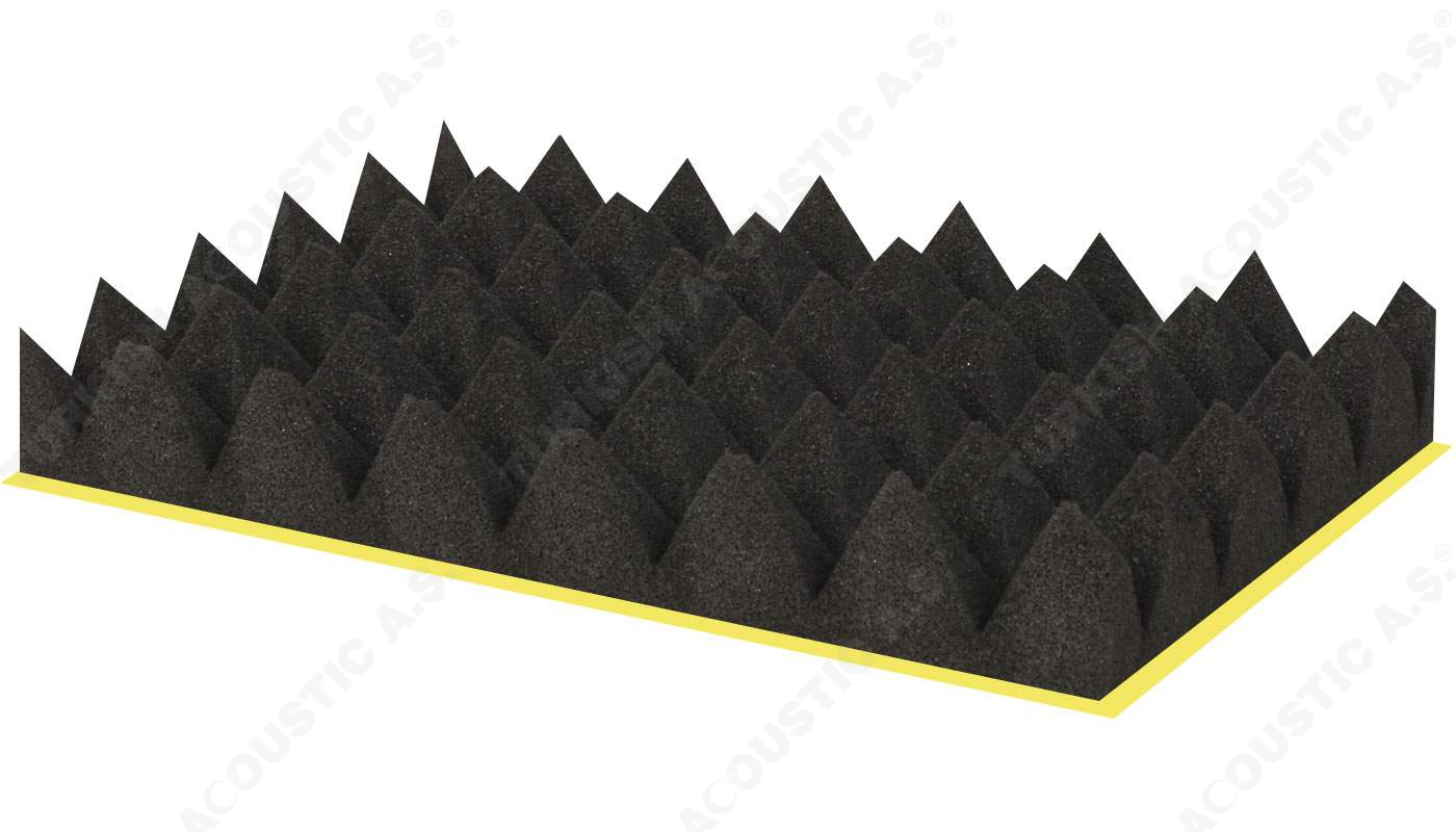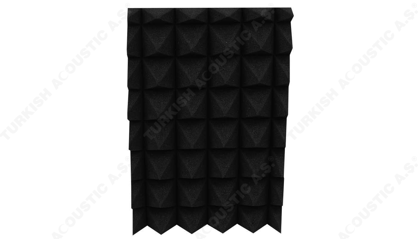 Yanmaz Akustik Piramit Sünger Ölçüleri : 100 cm x 100 cm Plaka ölçülerinde olup, 40 mm ve 50 mm perakende olarak satışa sunulmaktadır.