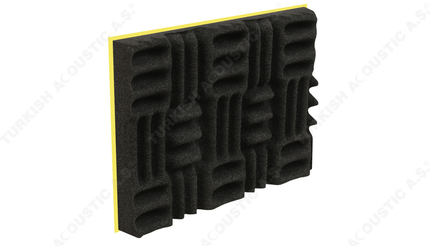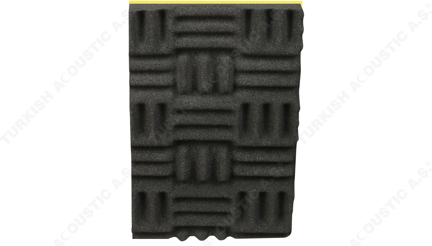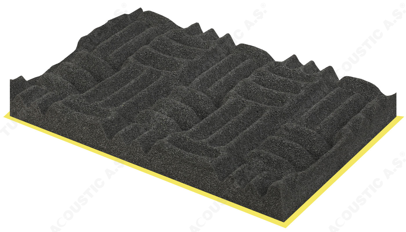 Yapışkanlı Labirent Sünger : Labirent süngerin kendinden yapışkanlı modeli uygulamada kolaylık sağlamaktadır. Poliüretan adı verilen maddeden üretilen kendinden yapışkanlı labirent sünger akustik ve yanmaz özellikte bir süngerdir. Akustik ses düzenlemeleri ve akustik ses sorunlarını çözümlemek için tavan ve duvarlara uygulanmaktadır. Yankı gibi problemleri de gidermektedir. Akustik düzenlemede yüksek performans sağlar. Labirent sünger ses yalıtımınada katkı sağlar. Fakat tek başına güçlü sesleri izole edemez. Şiddetli gürültülerin yalıtılması için epdm ağır ses bariyeri ile birlikte kullanılır. Bariyerli modeli, iki akustik sünger arasına epdm kurşun bariyeri konularak oluşturulur. Evlerde, ofislerde ve salon projelerinde rahatlıkla kullanabilir ve dilerseniz uygulamaları anahtar teslim yapabiliriz. Sertifikalara sahip olup sertifikalar sitemizde yer almaktadır. Teknik şartnamelere uygundur. Akustiksan her zaman hizmetinizdedir.