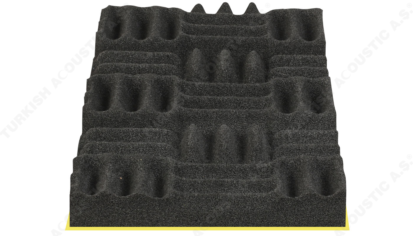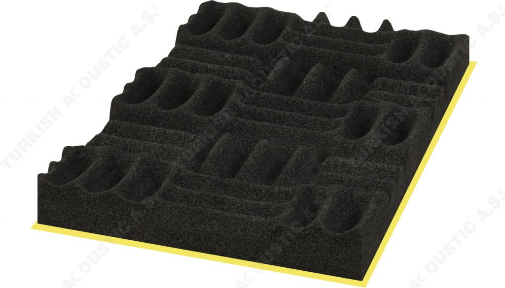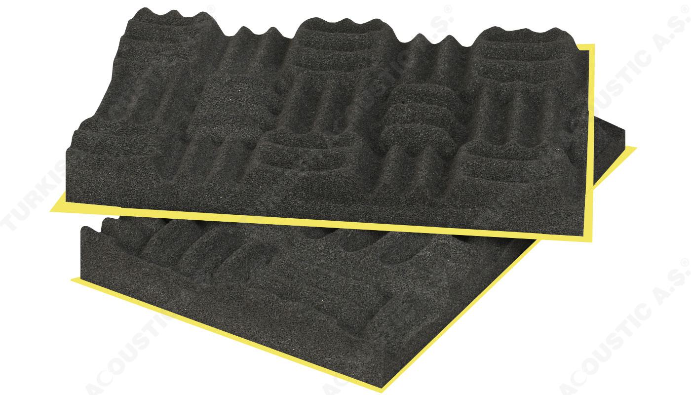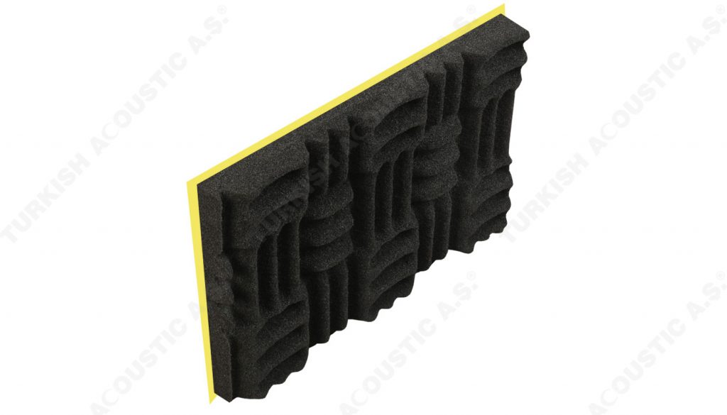 Yapışkanlı Labirent Sünger : Labirent süngerin kendinden yapışkanlı modeli uygulamada kolaylık sağlamaktadır. Poliüretan adı verilen maddeden üretilen kendinden yapışkanlı labirent sünger akustik ve yanmaz özellikte bir süngerdir. Akustik ses düzenlemeleri ve akustik ses sorunlarını çözümlemek için tavan ve duvarlara uygulanmaktadır. Yankı gibi problemleri de gidermektedir. Akustik düzenlemede yüksek performans sağlar. Labirent sünger ses yalıtımınada katkı sağlar. Fakat tek başına güçlü sesleri izole edemez. Şiddetli gürültülerin yalıtılması için epdm ağır ses bariyeri ile birlikte kullanılır. Bariyerli modeli, iki akustik sünger arasına epdm kurşun bariyeri konularak oluşturulur. Evlerde, ofislerde ve salon projelerinde rahatlıkla kullanabilir ve dilerseniz uygulamaları anahtar teslim yapabiliriz. Sertifikalara sahip olup sertifikalar sitemizde yer almaktadır. Teknik şartnamelere uygundur. Akustiksan her zaman hizmetinizdedir.